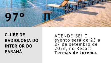 97º Clube de Radiologia do Interior do Paraná 15 de dezembro de 202516 de dezembro de 2025Marcelo Almeida Agende-se! O evento será de 25 a 27 de setembro de 2026, em Termas de Jurema. [ Saiba Mais ]