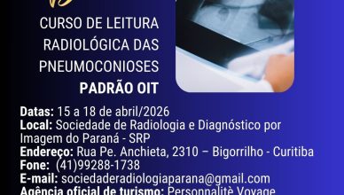 Curso de Leitura Radiológica das Pneumoconioses – Padrão OIT. 25 de novembro de 2025Marcelo Almeida Agende-se! O OIT será de 15 a 18 de abril de 2026, na sede da SRP. Inscreva-se pelo e-mail sociedaderadiologiaparana@gmail.com [ Saiba Mais ]