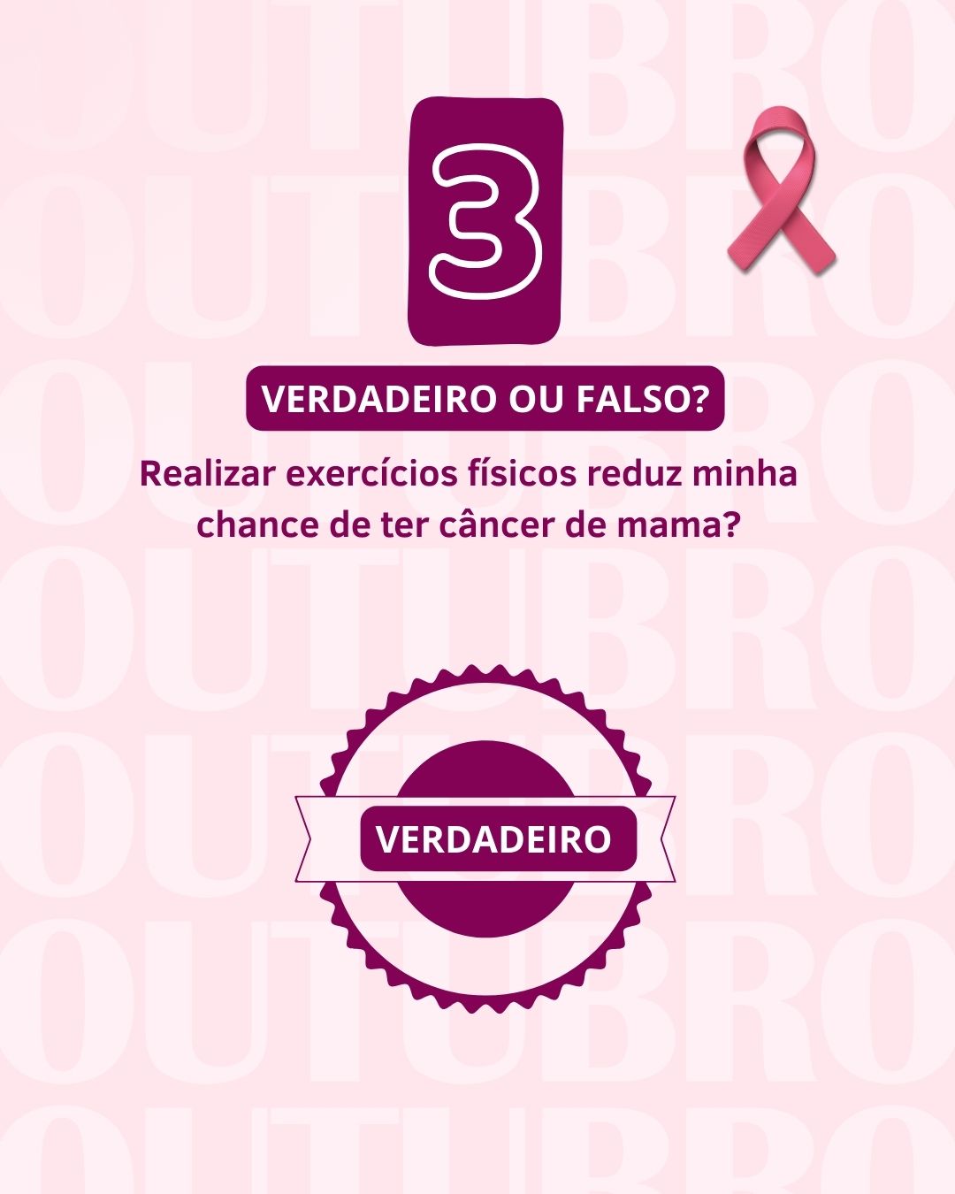 Do Diagnóstico à Superação: O Poder do Movimento. Confira o que é verdadeiro e o que é falso em relação ao câncer de mama. Contribuição: Dras. Linei Urban e Cristiane Spadoni. A SRP apoia esta causa.